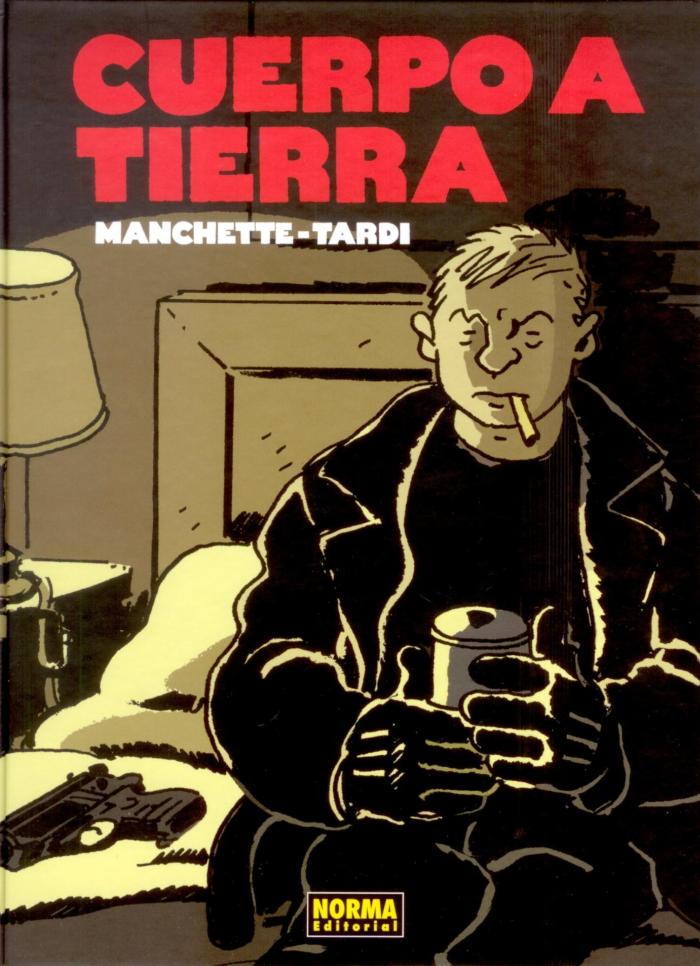 Ahora, también publicada por Norma -de hecho, la encargada de ir publicando en nuestro país toda la obra de Tardi-, podemos disfrutar en castellano de la última obra que muestra a Manchette y a Tardi formando equipo creativo en su cubierta: Cuerpo a tierra. Así se tituló en España la novela que se adapta aquí, y cuyo título original La position du tireur couché alude a la postura propia de un francotirador: tirado en el suelo, boca abajo. Cuerpo a tierra. Esa y no otra es la posición que debe adoptar muchas veces el protagonista del relato en el desarrollo de su trabajo: Martin Terrier es un asesino a sueldo que mata por encargo de una organización que lo reclutó años atrás cuando militaba en el ejército. Buscado por la Policía francesa, que lo considera un premio gordo, se dice de él que fue formado como asesino por la KGB soviética y la Dirección General de Inteligencia cubana, además de en los campos de Palestina… aunque el relato especula con que toda esta información podría no ser veraz.