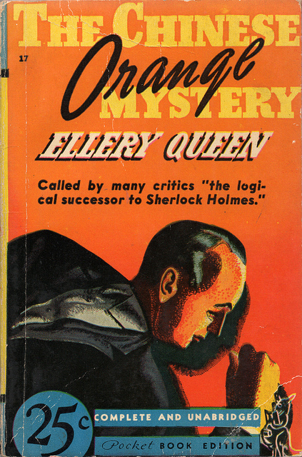 También nos desconcertaron con habitaciones cerradas otros inolvidables del genero: Ellery Queen (en realidad los primos Frederick Dannay y Manfred B. Lee) en El misterio de la mandarina (The Chinese Orange Mystery, 1934) se inventan otra habitación cerrada. Un plato de frutas (mandarinas). Un cadáver con el cráneo aplastado y la ropa vuelta del revés y todos los muebles de la habitación colocados en el extremo opuesto al que se encontraban originariamente retan al lector. Y, por supuesto, como era habitual en las novelas de Ellery Queen, ese punto de la novela donde se desafía al ingenio: “Afirmo que en este punto en su lectura de El misterio de la mandarina tiene usted todos los datos esenciales en su poder para una solución lógica del misterio”.