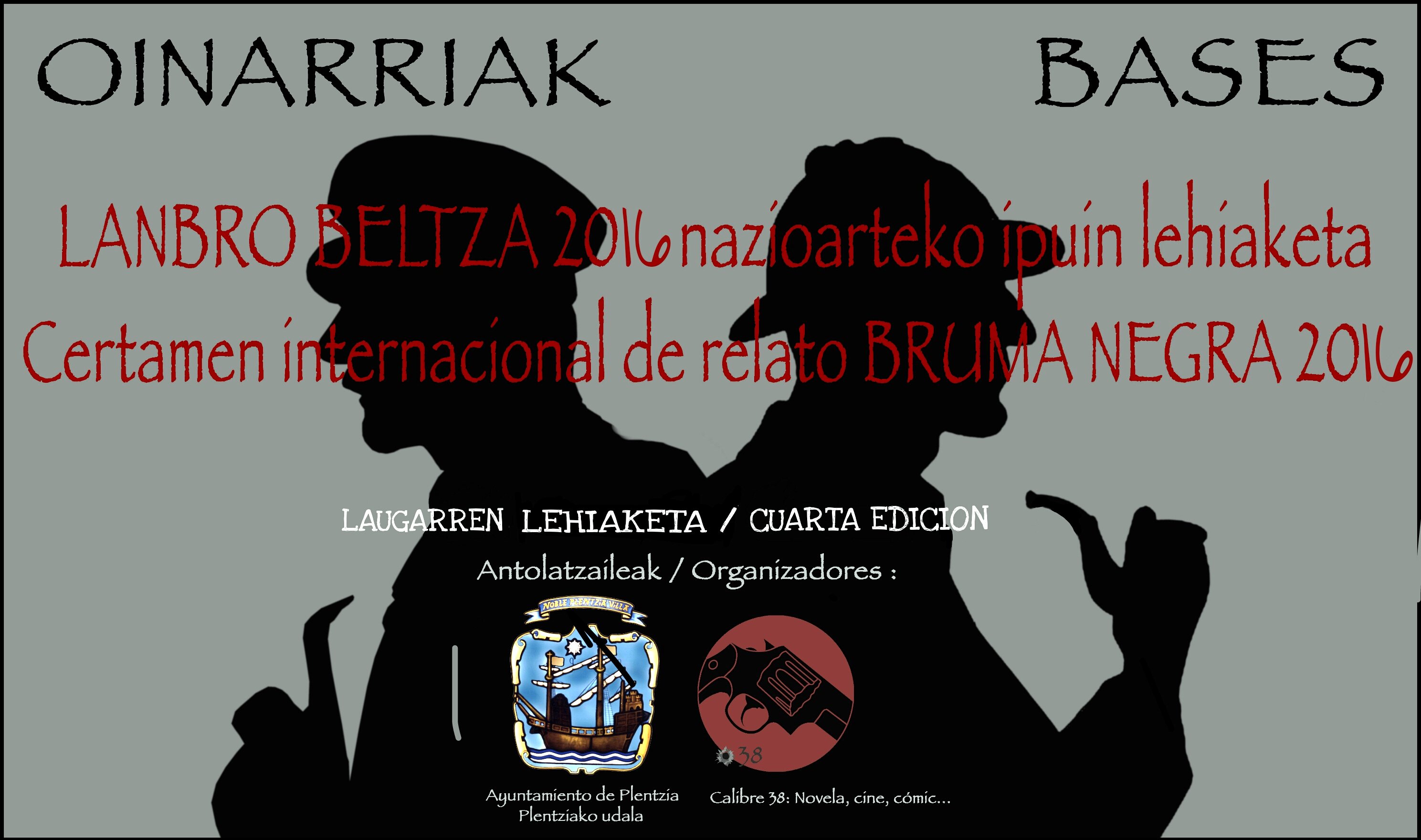 El Ayuntamiento de PLENTZIA en colaboración con la Revista Digital CALIBRE .38 convocan el IV CONCURSO INTERNACIONAL DE RELATO BRUMA NEGRA. TEMA: NARRATIVA NEGRA, POLICIACA Y DE INTRIGA.