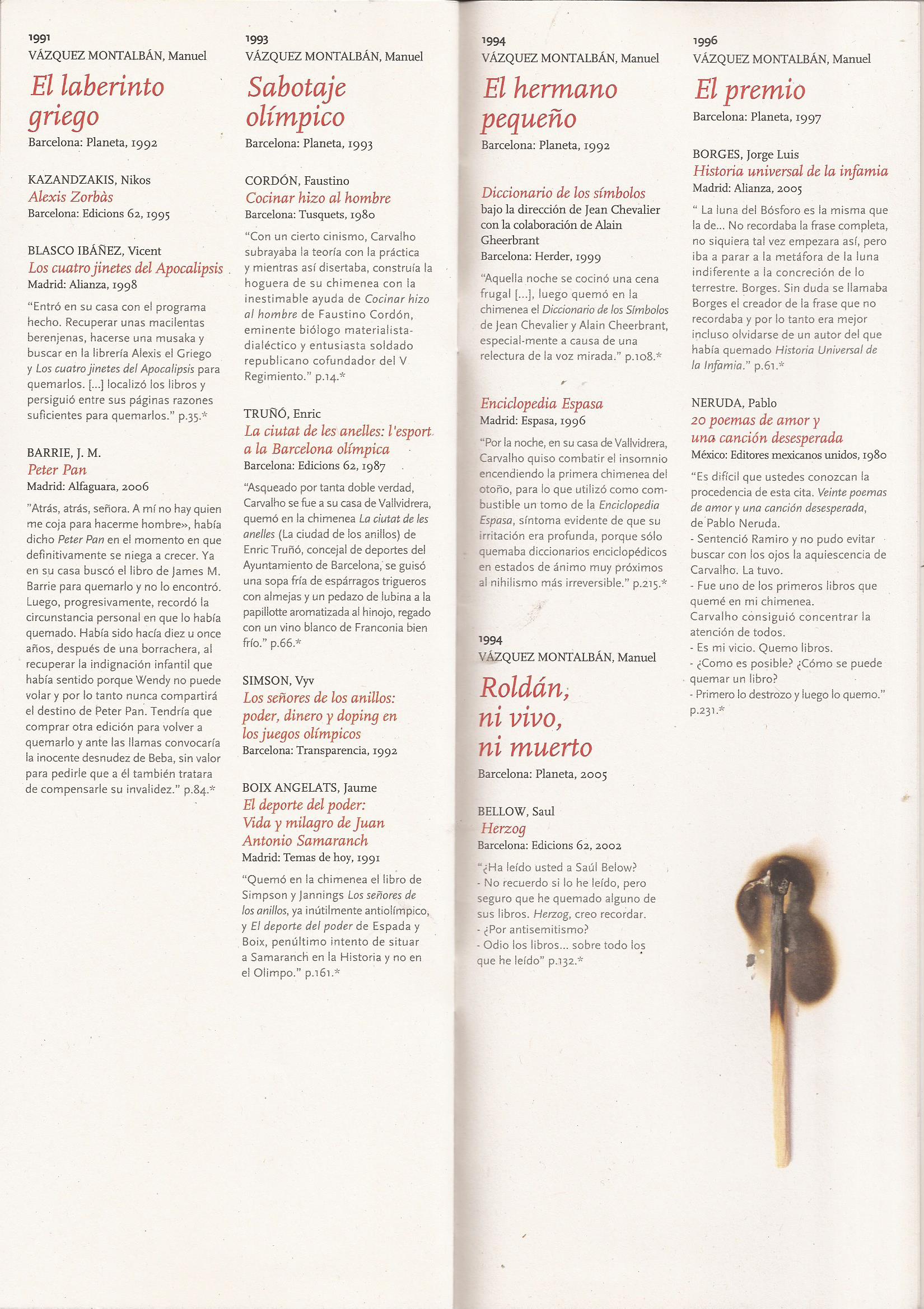 Carvalho quema libros “porque considera que la cultura le ha separado de la vida”. Nosotros, las gentes de Calibre .38 no llegamos a tanto, pero se acerca el fin de año y hemos considerado que sería un buen regalo, para todos aquellos locos por el género criminal disponer de la guía que BCNegra regaló en 2009, aunque sea escaneada, y poder así consultar ese listado. Por si alguno de los libros citados se encuentra por casa. Por si en casa hay chimenea. Por si el invierno se pone duro en estos tiempos de pobreza energética que nos ha tocado vivir.
