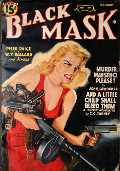 Black Mask nació como pulp magazine en abril de 1920 no dedicado exclusivamente al crimen. Sin embargo, las historias de aventuras o sobrenaturales (weird tales) resultaron eclipsadas pronto por las historias de detectives al estilo de las novelas británicas de misterio. Bajo la dirección de Cap Joseph T. Shaw, el pulp se centra en las novelas de detectives. En mayo de 1923 publica la que es considerada la primera novela negra de detectives “duros” (hardboiled dicks): Three Gun Terry de Carroll John Daly, protagonizada por el detective Race Williams; y en octubre de ese mismo año, Dashiell Hammett publica su primera historia del Agente de la Continental. Había nacido un género.