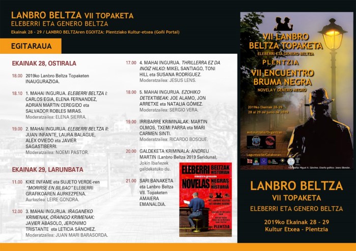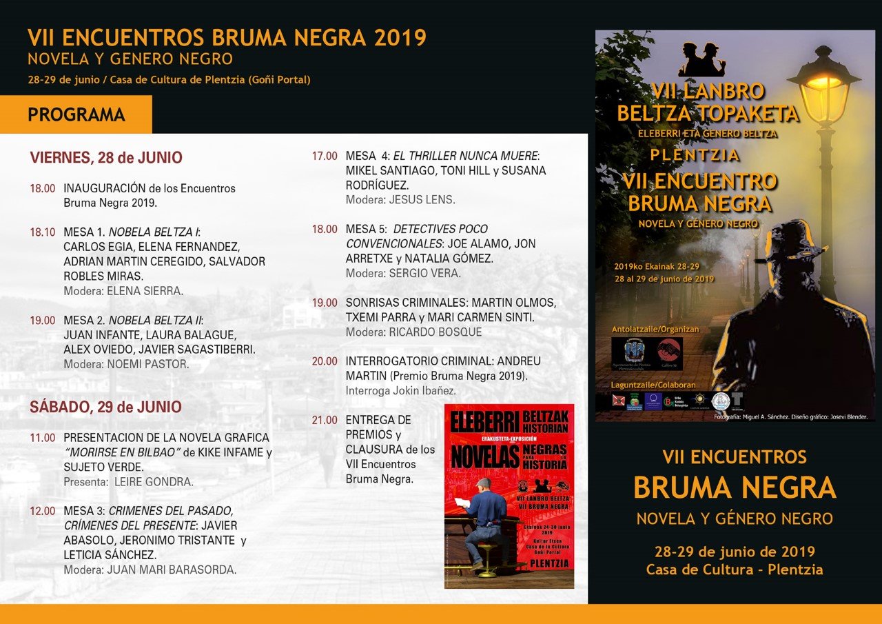 Bruma Negra 2019 (Plentzia, 28 y 29 de junio). Cartel y programa revistacalibre38 / 29 mayo, 2019 Fecha: 28 y 29 de junio de 2019 Lugar de celebración: La Casa de Cultura (Goñi Portal), sede de la Exposicion Novelas negras para la historia / Eleberri Beltzak Historian. PROGRAMA Puedes seguirnos en Google+, Twitter y Facebook Compartir: Comparte en Facebook (Se abre en una ventana nueva) Facebook Compartir en Bluesky (Se abre en una ventana nueva) Bluesky Compartir en X (Se abre en una ventana nueva) X Compartir en WhatsApp (Se abre en una ventana nueva) WhatsApp Compartir en Telegram (Se abre en una ventana nueva) Telegram Compartir en Threads (Se abre en una ventana nueva) Threads Enviar un enlace a un amigo por correo electrónico (Se abre en una ventana nueva) Correo electrónico Me gusta Cargando...