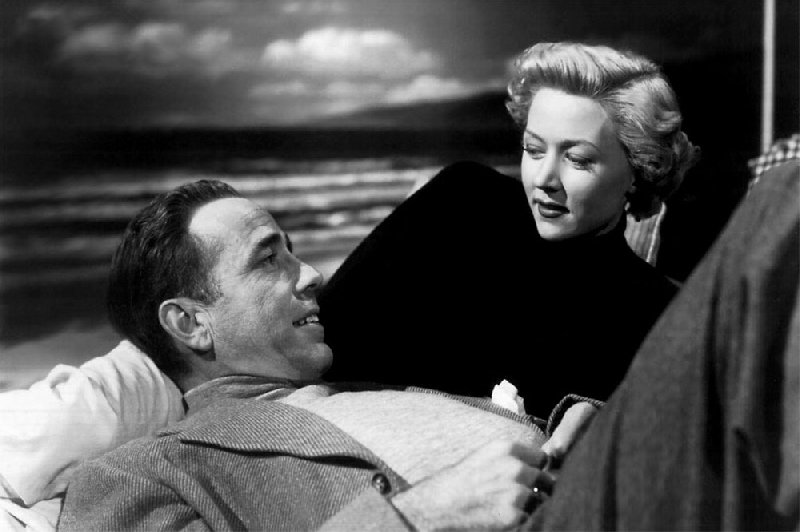 Y es que el Dix interpretado por Bogart no es ningún serial killer, faltaría más. Es un escritor en horas bajas con un temperamento de mil demonios y propensión a la violencia. Teniendo que adaptar para la pantalla una novela popular de escasa calidad literaria, le pide a la chica del guardarropa de un club que le acompañe a su casa y le cuente de qué va, dado que ella la ha leído y él no tiene ni tiempo ni ganas de hacerlo.