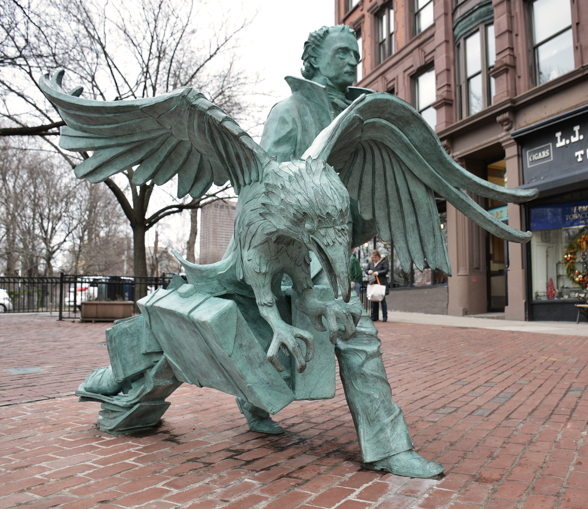 Por cierto, si visitan ustedes Downtown Crossing para verificar lo acertado y preciso de esta guía de viajes criminales, no estaría de más que se acercaran a la confluencia de Boylston St. con Charles St. y retratarse junto a la estatua de Edgar Allan Poe en su ciudad natal -le reconocerán por la maleta que lleva en la mano, el cuervo que le acompaña y la multitud de fotógrafos que le rodean permanentemente-. Y será la primera de las paradas en una ruta que, en lugar de denominar como Costa Este, podríamos haber denominado “Ruta de los lugares en los que vivió Poe”, como podrán comprobar según vayamos avanzando en el viaje.